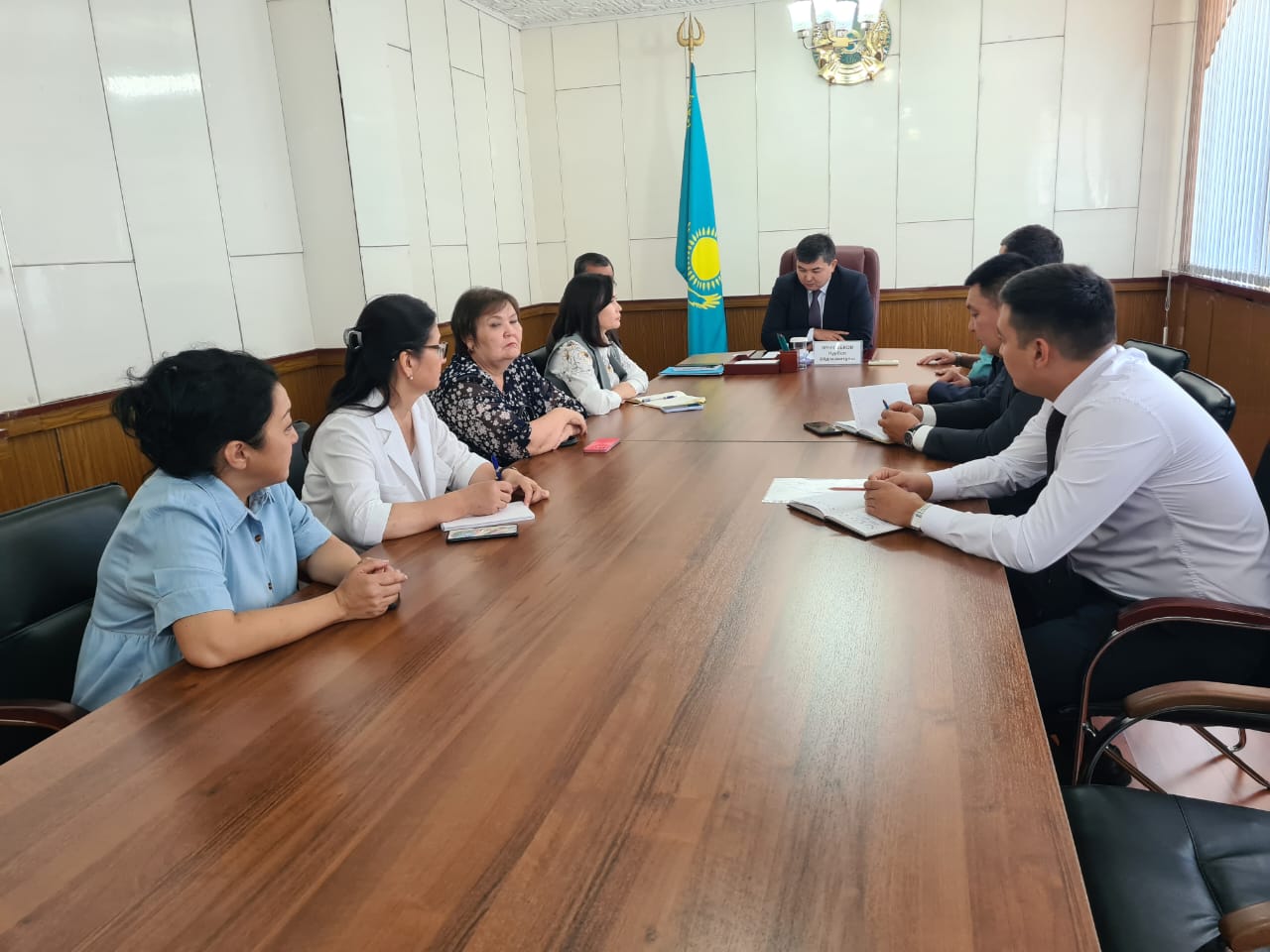 Жұмыс барысы аудандық әкімдіктен басталды. Аудан әкімі Нурбол Жүнісбеков жане аудандық спорт бөлімінің басшысы Ерназар Тоқсанбаев және аудандық білім бөлімімен бірігіп, алдағы жасалатын жұмыстар талқыланды. Атап айтқанда, «Дені сау қала» («Здоровый город») , «One health» , «Балаға мейірімділікпен қарайтын мектеп» атты жобалардың жоспарлары жасалды.