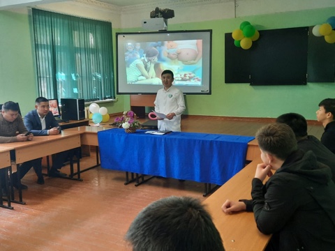 фельдшер доврачебного мужского кабинета Абделиев Жанғазы в Каратауском горно- техническом колледже.